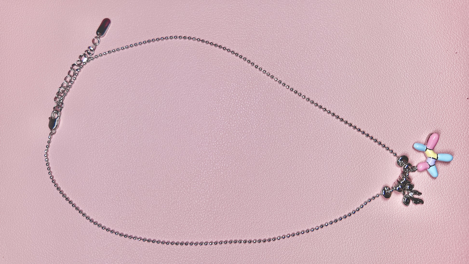 A playful little balloon dog charm in glossy pastels, strung on a sleek bead chain. It’s light, cute, and made for daily smiles~